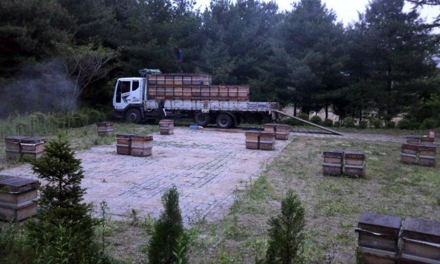 북쪽으로 도착해서 아카시아 꽃이 필 지역을 선정해 벌통을 내린다.