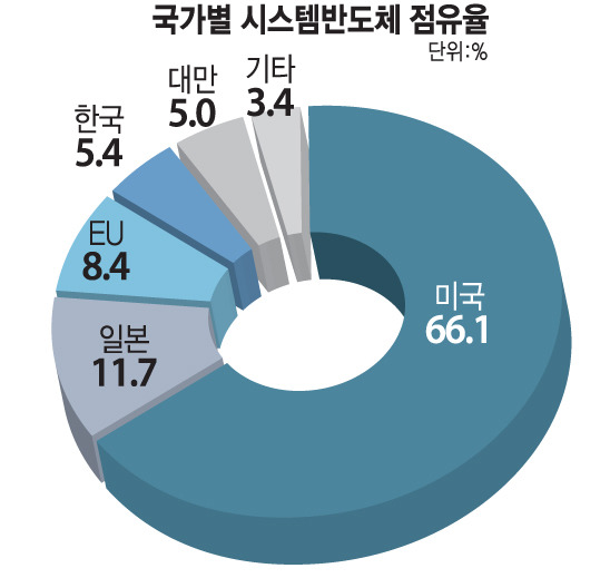 2) 시스템 반도체의 강자는 미국으로 점유율 60% 이상임.
