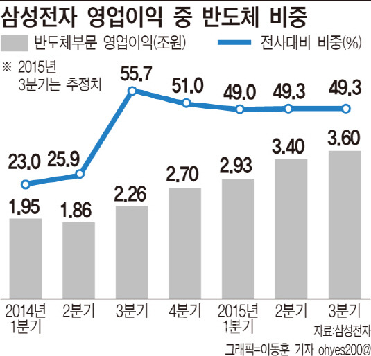 삼성전자 영업이익의 절반 가량이 반도체 사업에서 나오는지라