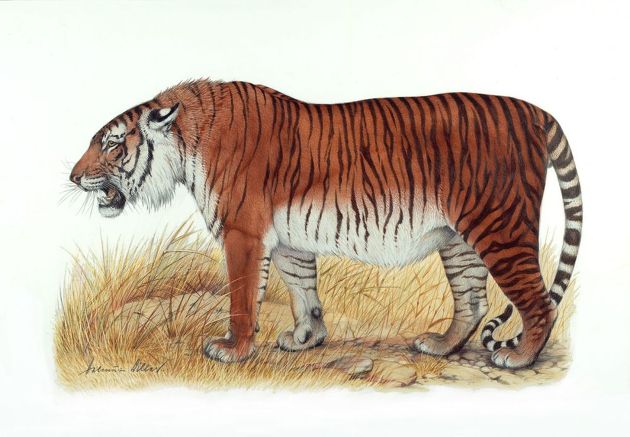 위 사진의 거대한 호랑이가 1970년대 이후 멸종한 것으로 추정되는 카스피 호랑이다.