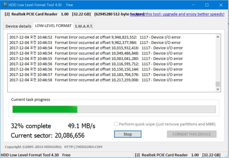 HDD LLF Low Level Format Tool - 하드 디스크 로우 레벨 포맷 프로그램(초기화)첨부파일 : (6)HDDLowLeevelFormt setup.4.30.exe