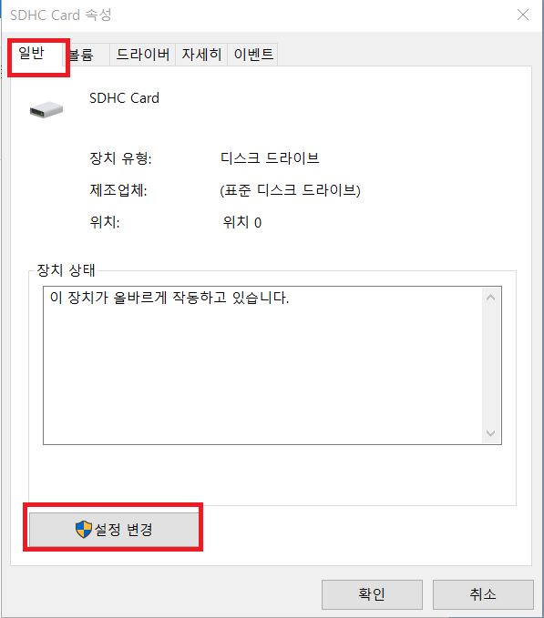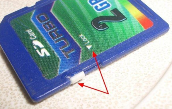 메모리 카드 표면에 Lock으로 표기된 부분에 스위치가 이동하여 있는지 확인