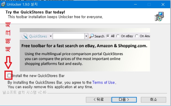 2. 설치시 아래의 추가설치파일 체크박스를 체크하지마세요