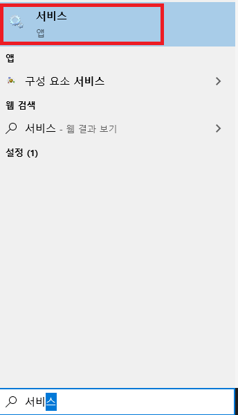1. 윈도우 10 업데이트 서비스를 중지하겠습니다. 윈도우키+R 키를 눌러 실행창을 연 다음 “Services.msc”를 검색하시거나 윈도우키를 눌러 좌측 하든 메뉴검색에 “서비스”를 검색한 뒤 실행해주세요.