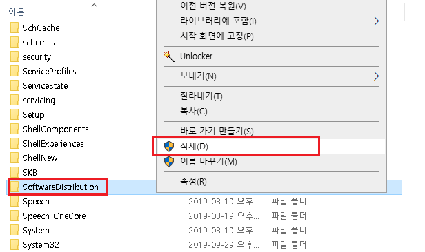 - 윈도우 업데이트 폴더 삭제 및 재설치