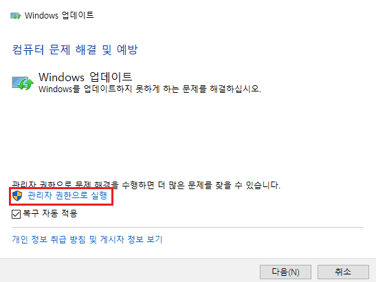 - 마이크로소프트에서 제공하는 윈도우 업데이트 오류 해결 프로그램