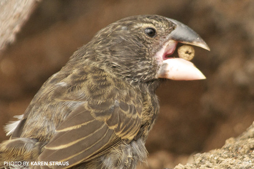 저런 크고 강한 부리 덕분에 이 핀치새들은 다른 핀치새들과 먹이 경쟁을 할 필요 없이 땅 위에서 우아하게 식사를 즐길 수 있게 되었지