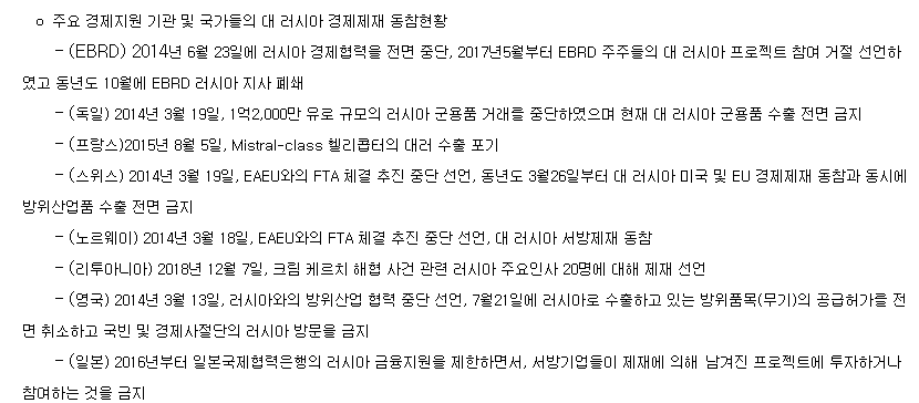 [각종 러시아 경제제재 상황]