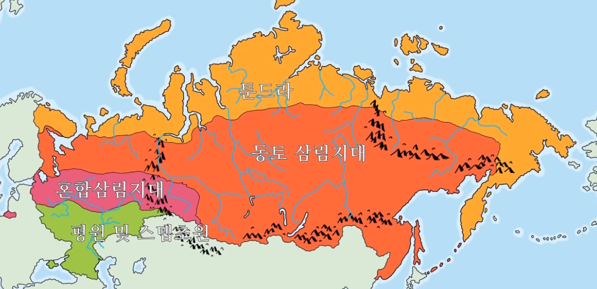 쉽게 진군할 수 있었고 결국 적은 저항 인구 + 비교적 접근이 쉬운 평원지형 덕에 러시아는 넓은 영토를 먹을 수 있었다.