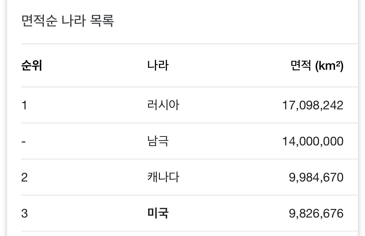 전세계 영토 3위. 2위인 캐나다와 큰 차이도 안나서 사실상 공동 2위