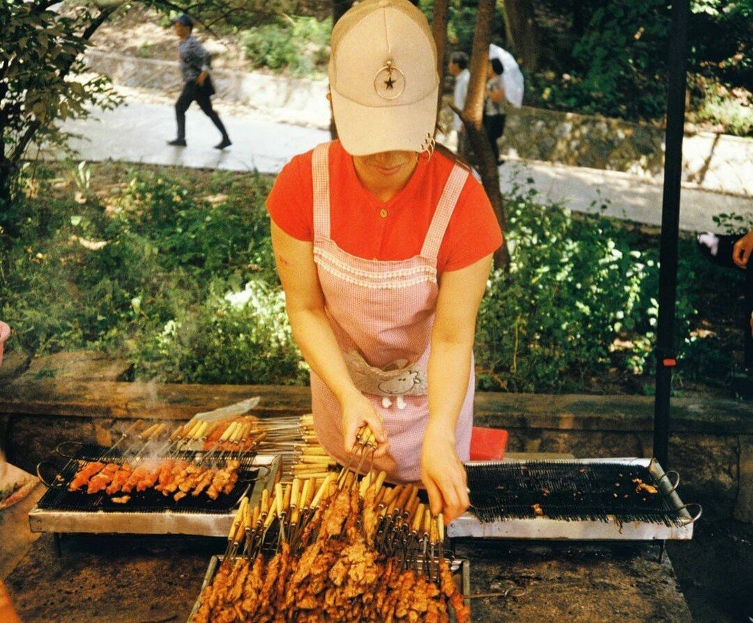 한국에서도 유행했던 중국 동북지방 양꼬치를 정확하게 비슷한 느낌으로 길거리에서 팔고 있음.