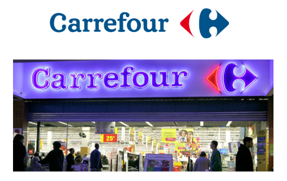 첫 매장이 5개의 교차로가 있던 구역에 지음. 그래서 그냥 프랑스어로 교차로 (Carrefour)