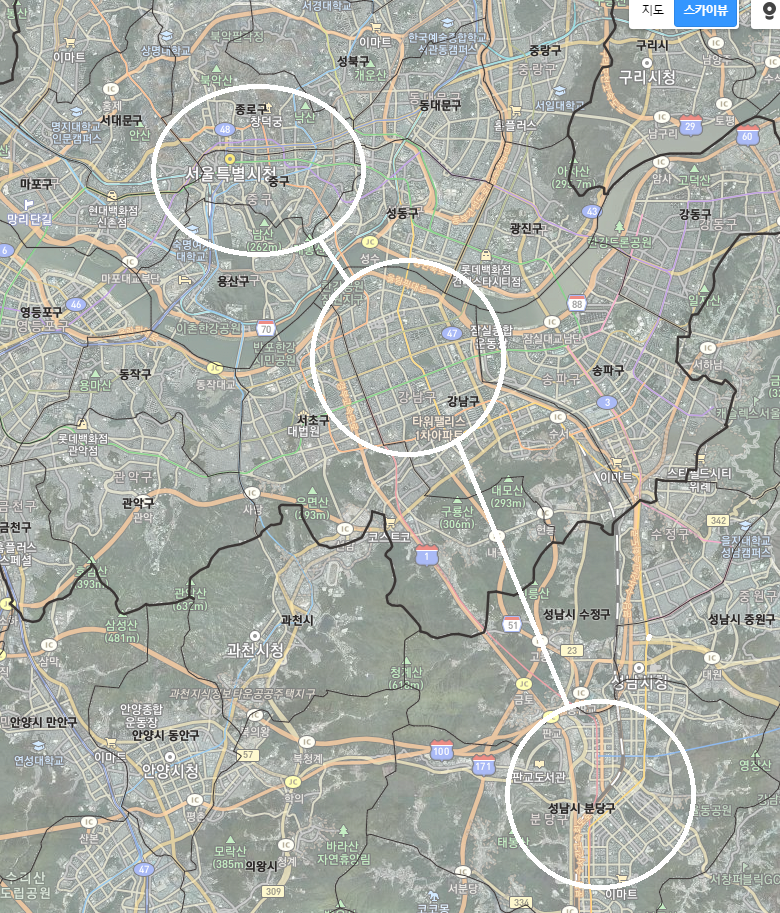 원래 한국의 부자들과 힘 있는 사람들은 서울 4대문 안에 살았음.
