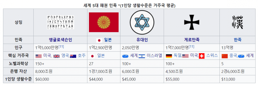 사실상 현재 지구의 헤게모니를 가지고있는 민족이라해도 과언이 아닌 민족