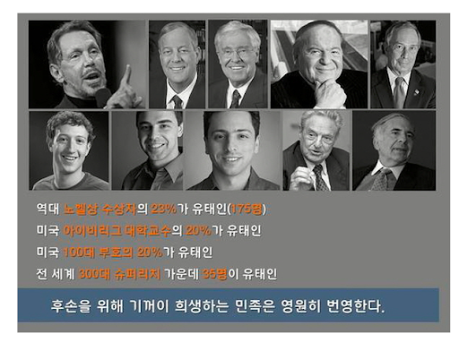 역사적으로 수많은 차별을 받아온 민족 인구는 미국에서 2퍼센트 정도밖에 안되지만 금융,언론,교육,문화,정치 등 대부분의 분야에서 엄청난 힘을 가지고 있으며 마르크스,아인슈타인 등 세계역사에서 유대인의 영향력은 소수의 인구지만 정말 대단하다