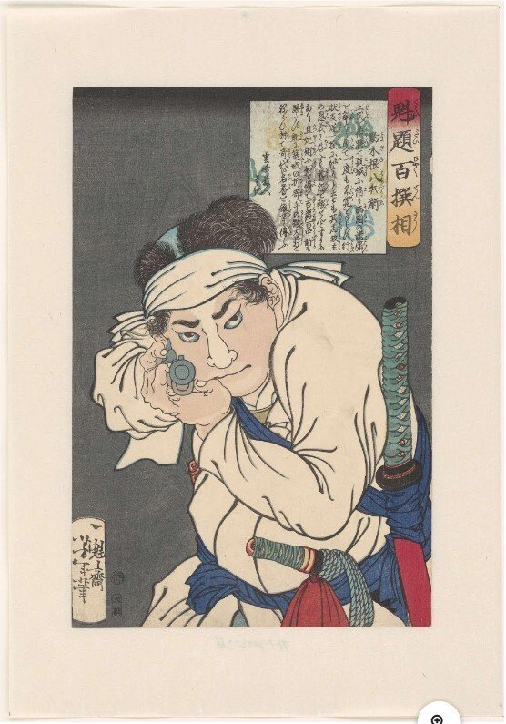- 제목: Komagine Hachibyoe, een pistool op de beschouwer richtend