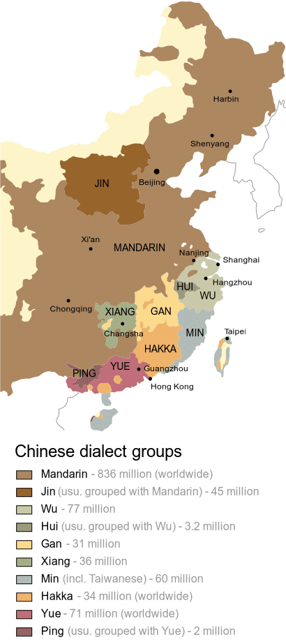 위 언어 지도에서 하카(객가), 민(푸젠, 복건, 호키엔이라고도 함), 월(yue, 광동)이 화교의 주류이며 민어의 일파인 민남어는 다시 조주어, 해남어 등으로 나눠지기도 합니다.