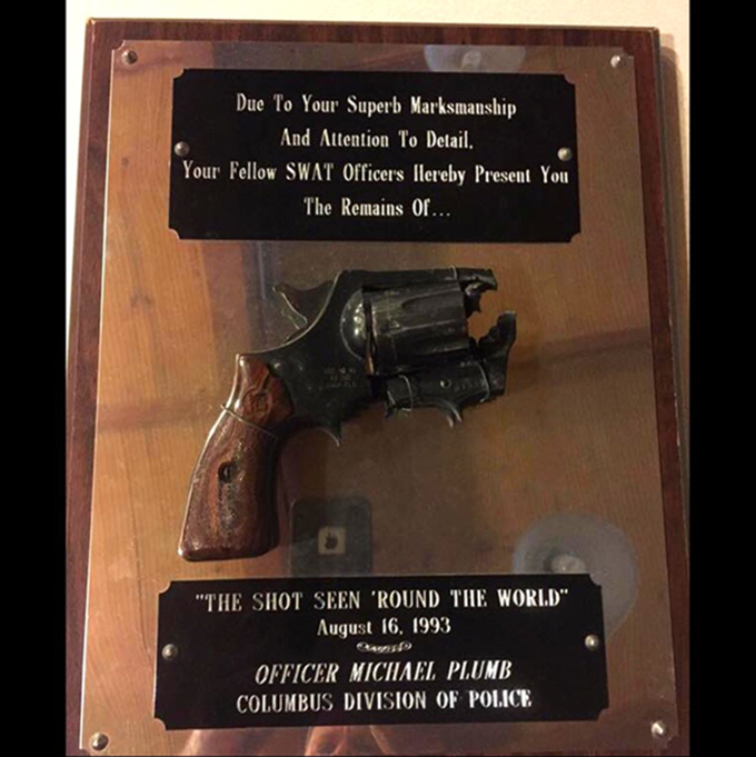 이후 그가 근무하던 SWAT 본부에 걸린 부서진 총