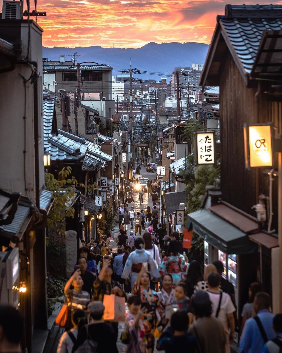 교토의 메인거리인 산넨자카 거리. 목조건축 그대로의 잘 정돈된 도로.