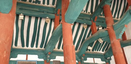 (조선의 선운사 만세루. 위 초록색 길다란 나무들이 서까래인데 반듯하게 다듬지도 않고 그냥 그대로 건물에 박아올렸다)