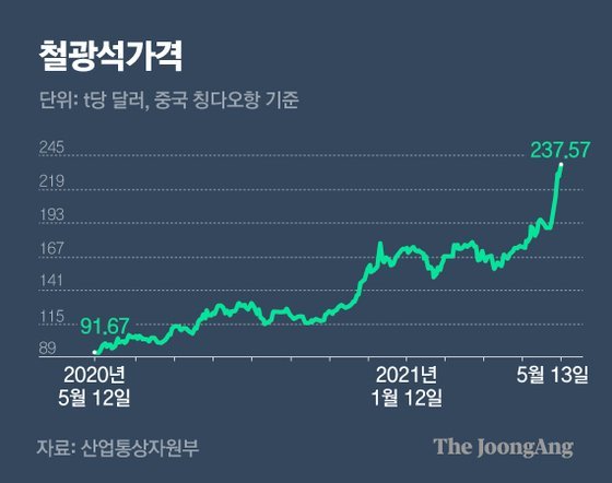 59. 톤당 90불대 였던 철강석 가격이 200불을 넘겨버림