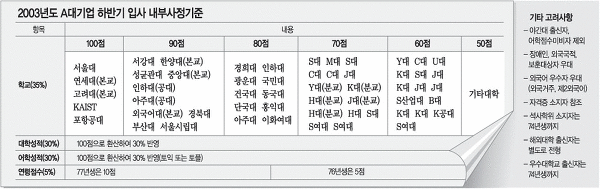 경희대는 우연찮게 유출된 동아일보 SK 입사표로 인하여 충격을 받게되고, 당시에 같은 비교군에 있었던 동경홍건단 서열에 의하여 엄청나게 까이고 있었다.