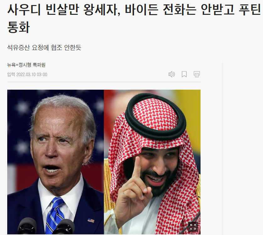 34. 빈 살만과 푸틴의 합의로 175만 배럴을 감산했던 빈 회담과 바이든의 요청으로 10만 배럴 감산한 이번 회의가 대조되는 것임
