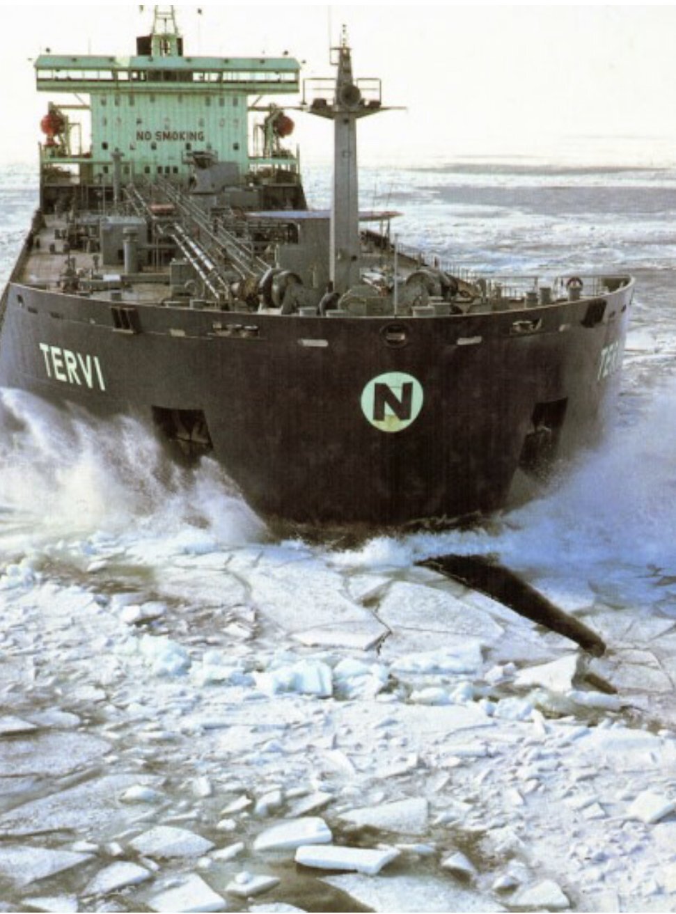 26. 쇄빙선이 얼음을 깨주고 앞서나가면 그 뒤를 따라가거나, 아예 쇄빙 능력이 있는 배로 가는 것임.