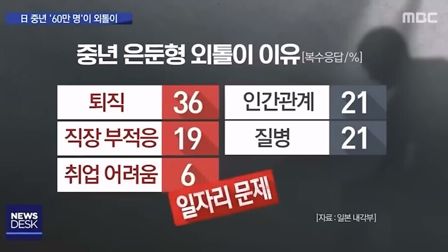 현재 일본 경우, 은든형 외톨이들이 나이를 먹어 백수 50대 자식과, 80대 노부모 동거하는