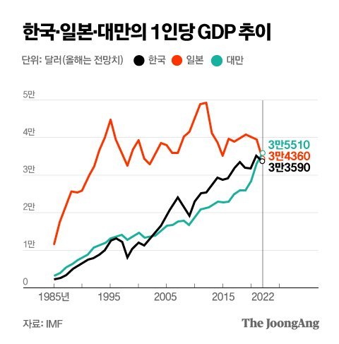 지난 역사를 보면 한국과 대만의 1인당 GDP는 큰 차이가 나지 않았다.