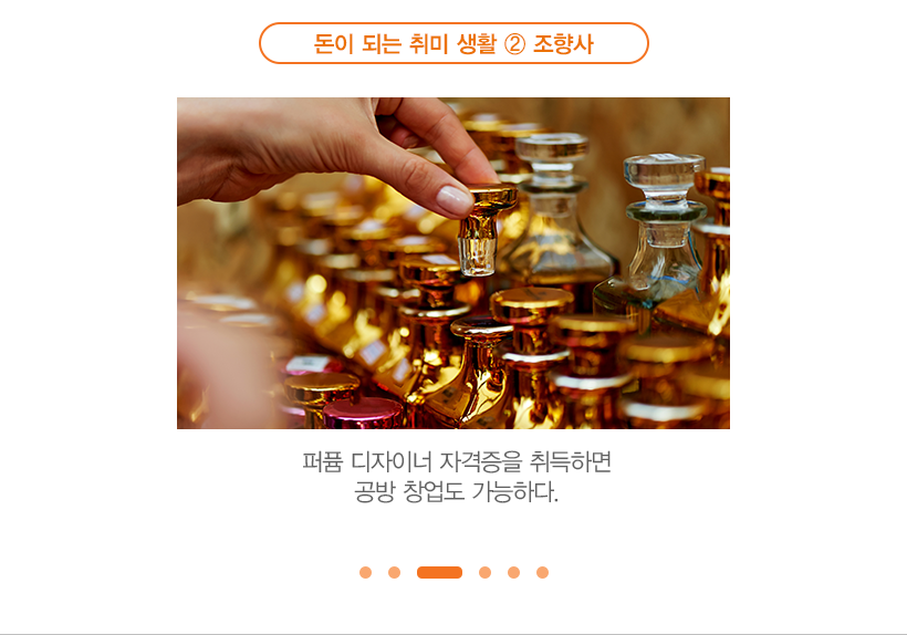 후각이 예민한 사람이라면 향수를 만드는 조향 취미를 추천합니다. 향을 직접 만들고 재조합하며 향을 디자인하는 ‘조향’. 아직 국가공인 자격증은 없지만, 민간 자격증을 취득할 경우, 개인 공방을 열 수도 있죠. 조향사의 수입은 플리마켓, 블로그 마켓, 공방 등 규모에 따라 천차만별입니다. 조향사 자격증은 1급 조향사(퍼퓨머), 2급 조향사(플래버리스트), 3급 조향사 (펴퓸 디자이너)로 구분되며, 매년 5월과 11월 2번의 시험이 있다고 합니다.